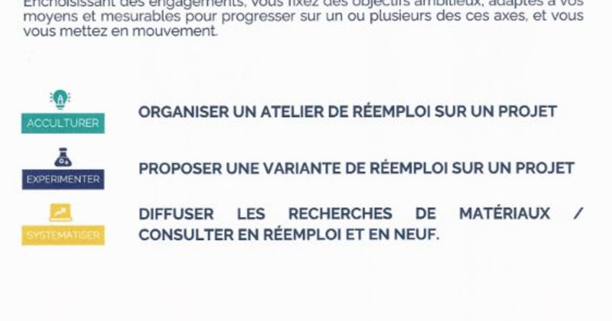 Nous sommes heureux de pouvoir participer à des groupes de travail pour améliorer la vision et la mise en place du réemploi dans le bâtiment.